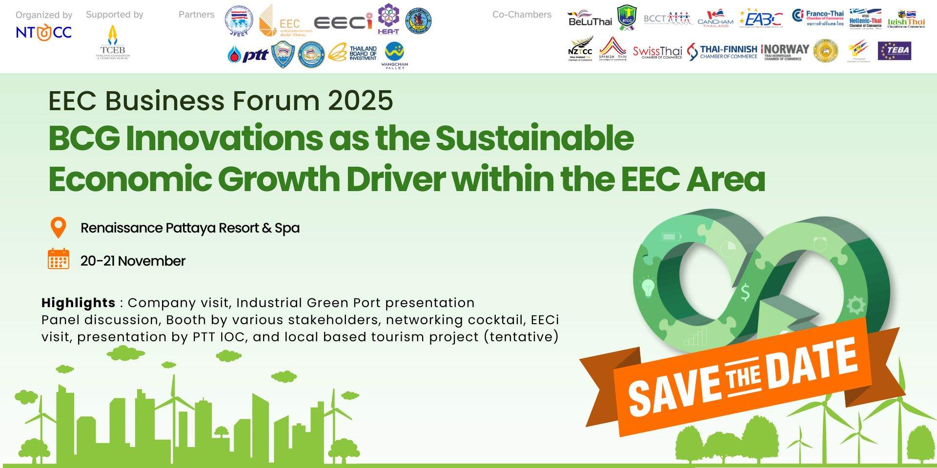 - 18.00–20.00 hrs: Multi-Chamber Networking Cocktail, hosted by BeLuThai & NTCC at Courtyard by Marriott North Pattaya