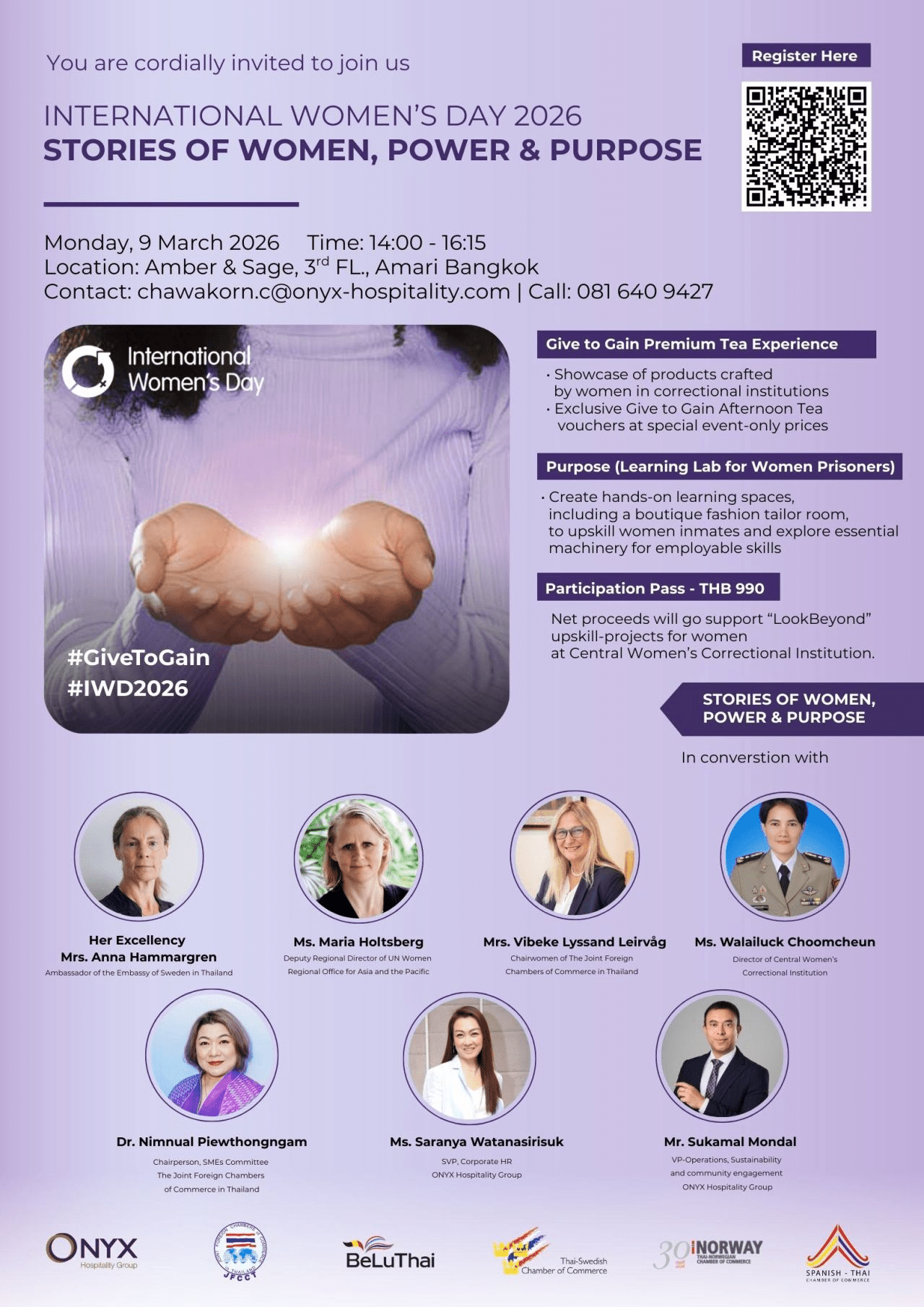 Net proceeds from the event will directly support these upskilling projects. The initiative is supported by several organizations and chambers, including Onyx Hospitality Group, UN Women Asia and the Pacific, JFCCT, BeLuThai, Thai-Swedish Chamber of Commerce, Thai-Norwegian Chamber of Commerce, and SPTCC.