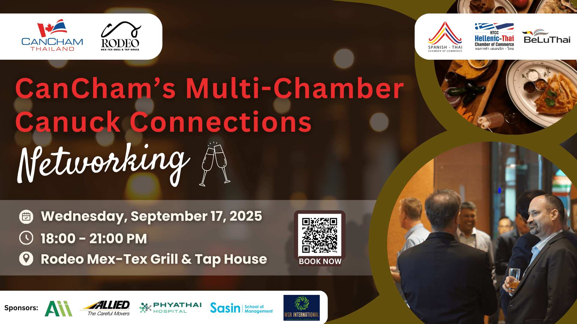 The Spanish-Thai Chamber of Commerce is delighted to join as a co-host of CanCham’s upcoming Multi-Chamber Canuck Connections Networking.