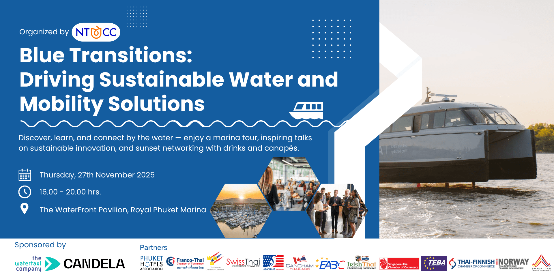The Spanish-Thai Chamber of Commerce (SPTCC) 🇪🇸 🇹🇭, in collaboration with the Netherlands-Thai Chamber of Commerce (NTCC)🇳🇱 🇹🇭 is delighted to invite you to co-brand our upcoming eventBlue Transitions: Driving Sustainable Water and Mobility Solutions, taking place on Thursday, 27 November 2025, at The Waterfront Pavilion, Royal Phuket Marina.